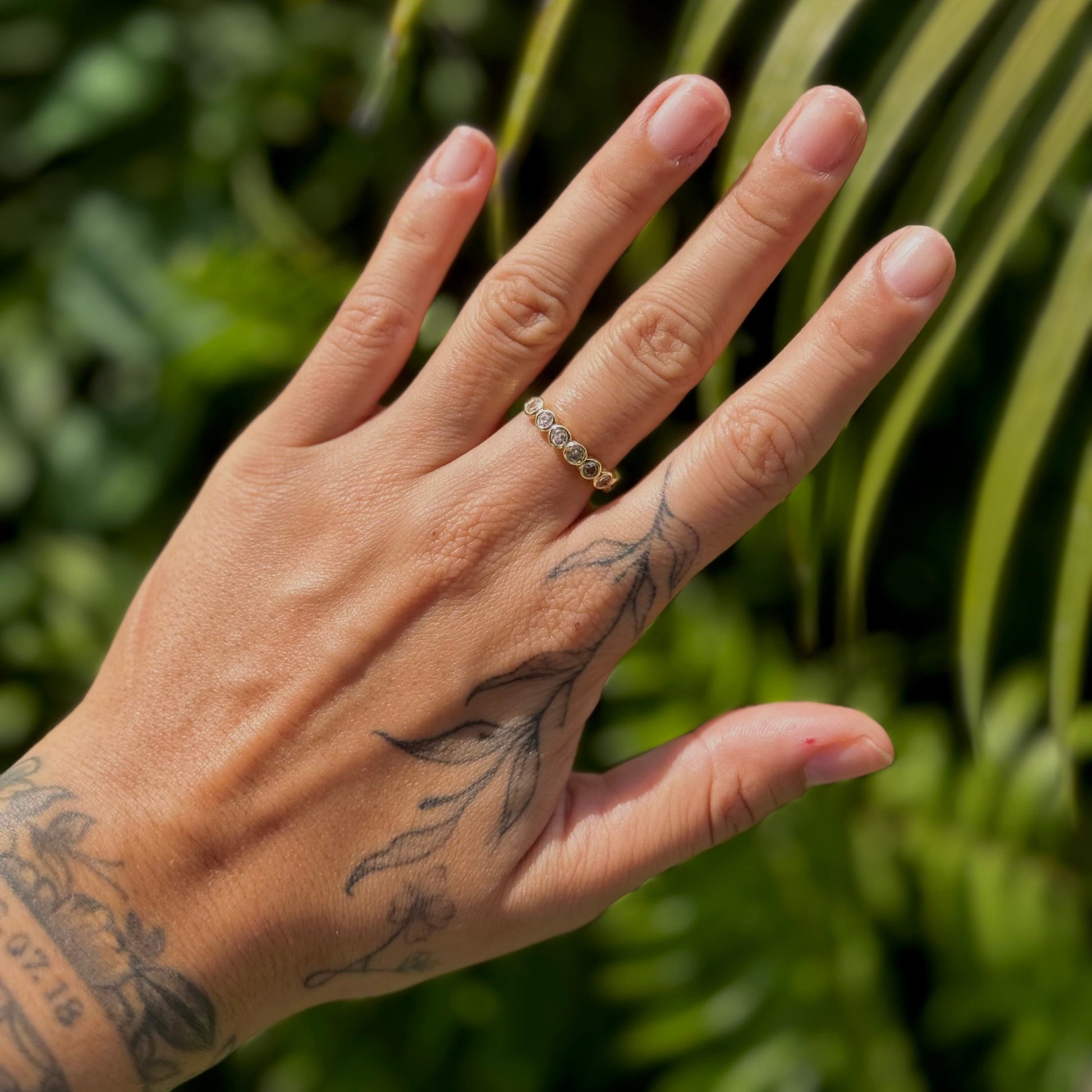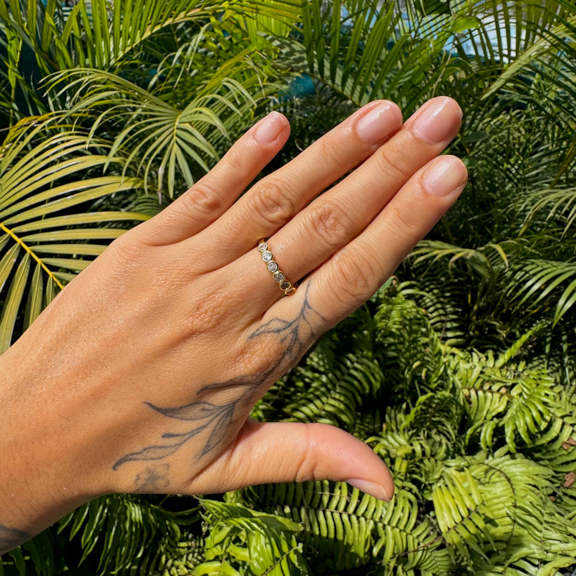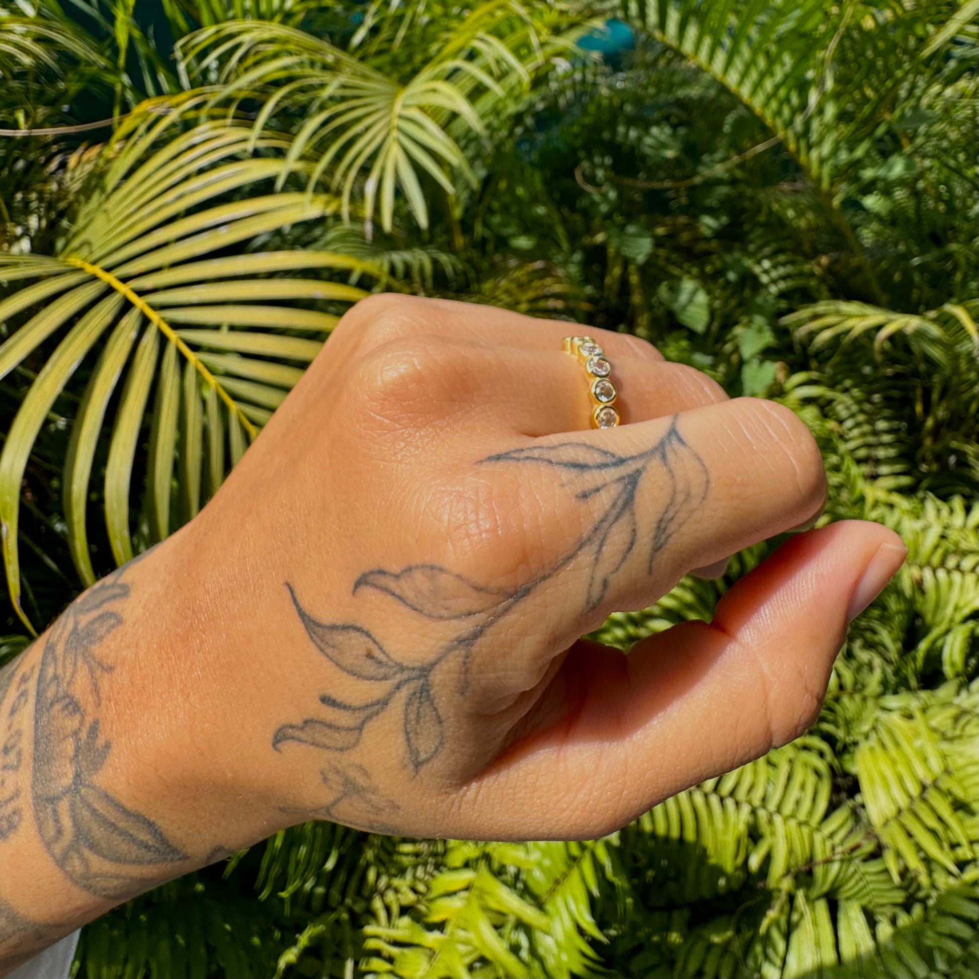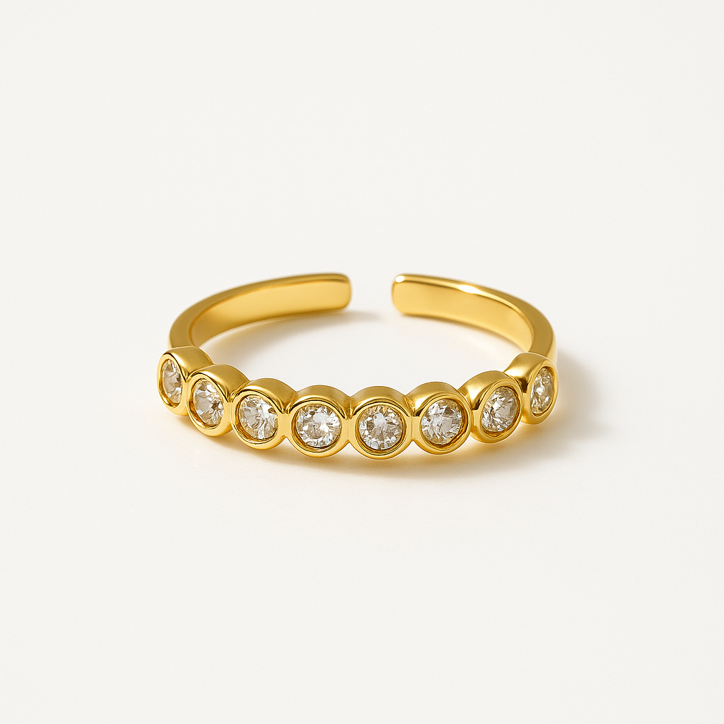 Este anillo de media churumbela combina la elegancia clásica con la practicidad de un diseño ajustable. Su acabado en oro laminado de 18K realza el brillo y la durabilidad, convirtiéndolo en una pieza ideal para quienes buscan sofisticación en cada detalle.