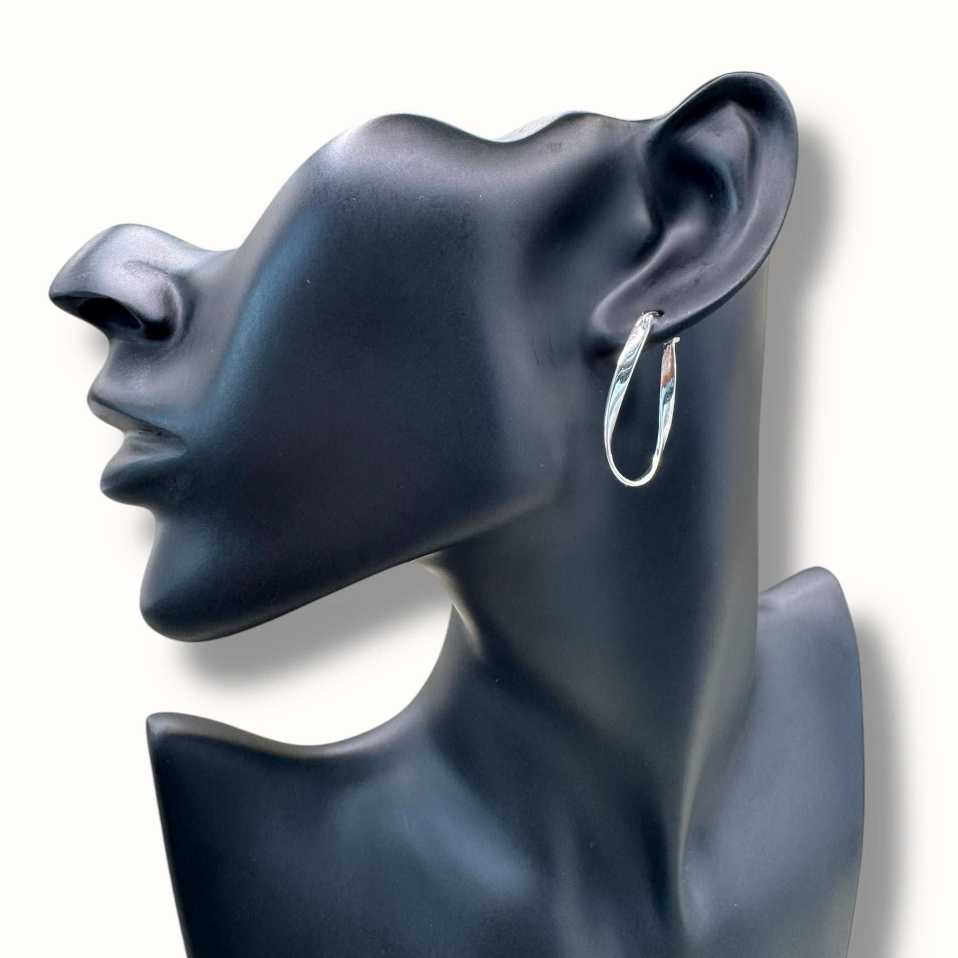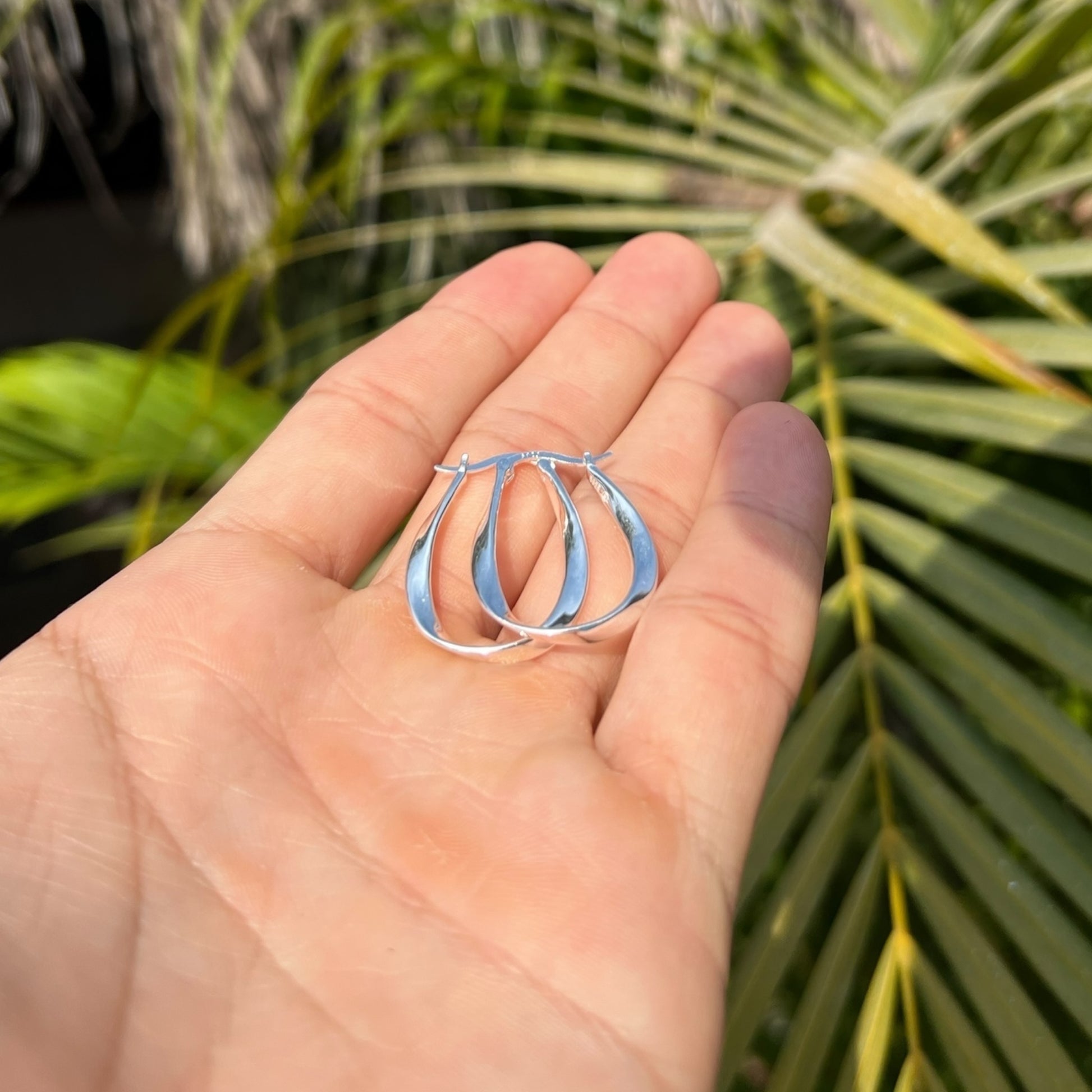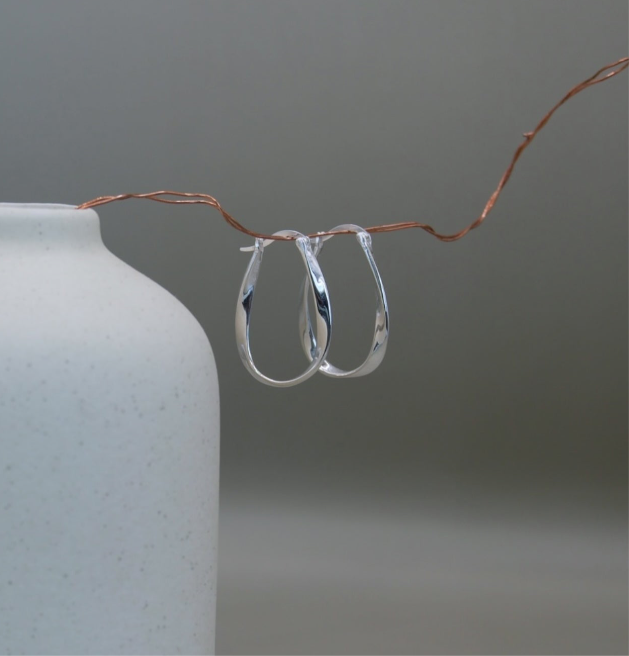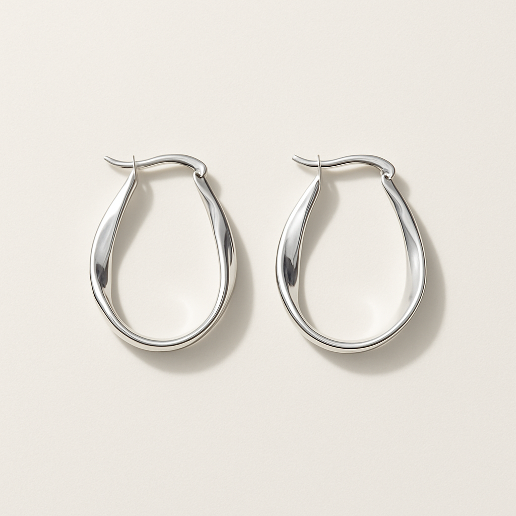 Diseño ligero y estilizado con un sutil movimiento ondulado que aporta elegancia y originalidad. Su acabado martillado refleja la luz con textura, creando una pieza moderna y con carácter ideal para elevar cualquier look.