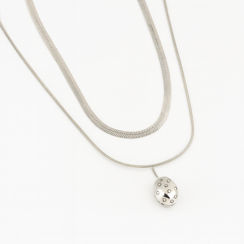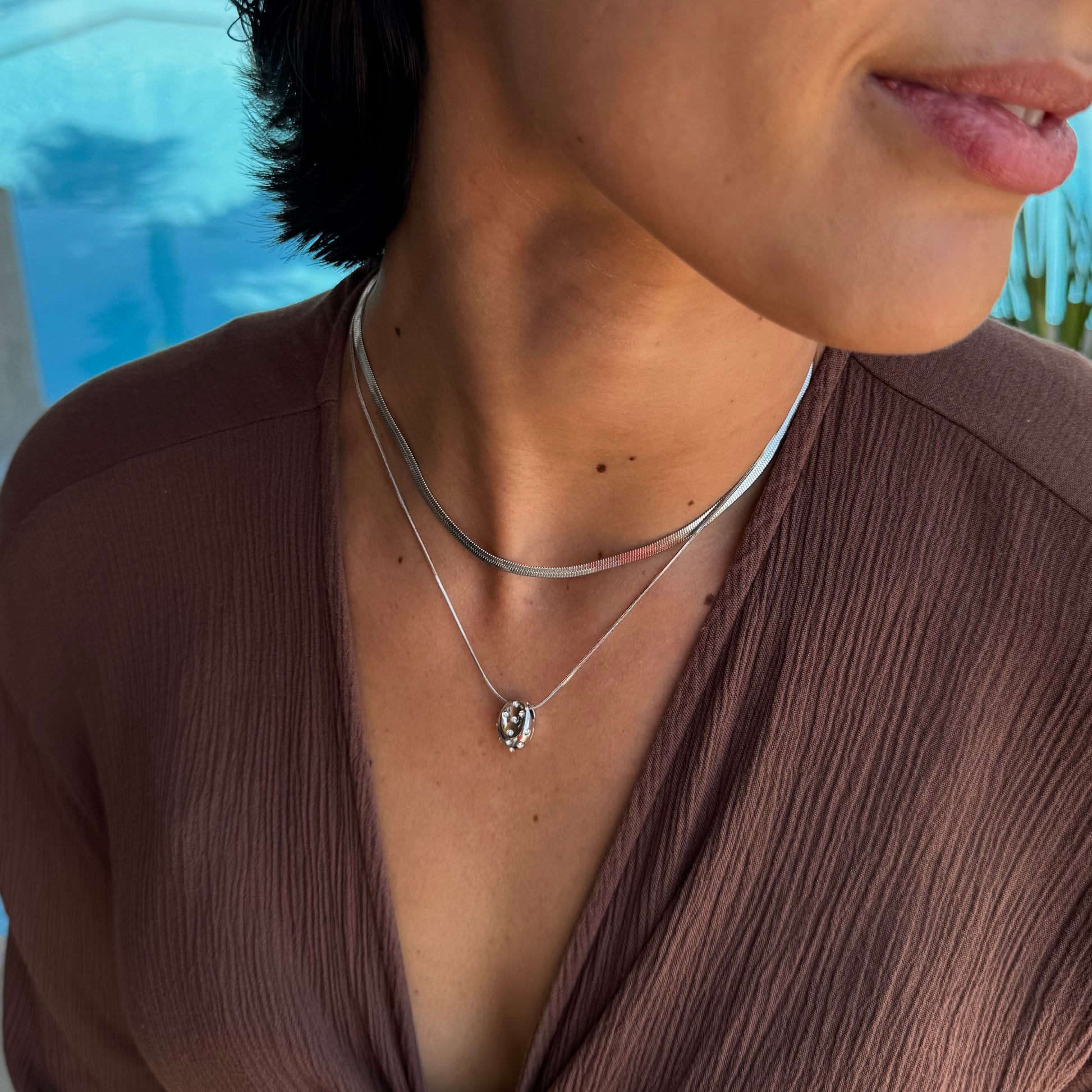 Esta cadena estilo cola de rata destaca por su diseño moderno y elegante, complementada con un dije poroso incrustado con circonias que aportan un brillo sutil y sofisticado. Una pieza única que combina fuerza y detalle, perfecta para elevar cualquier look.