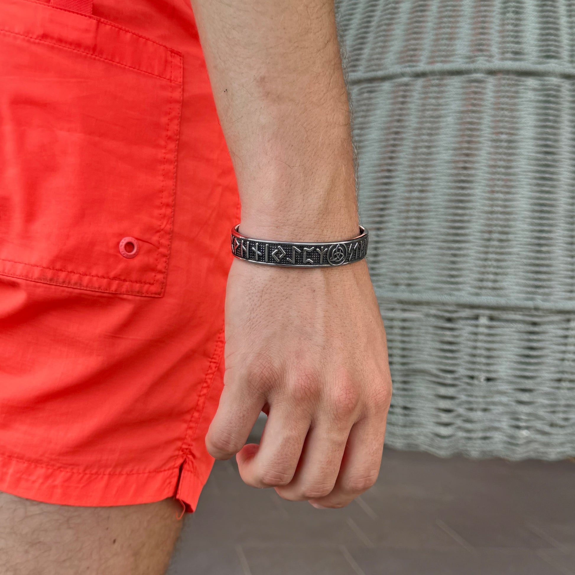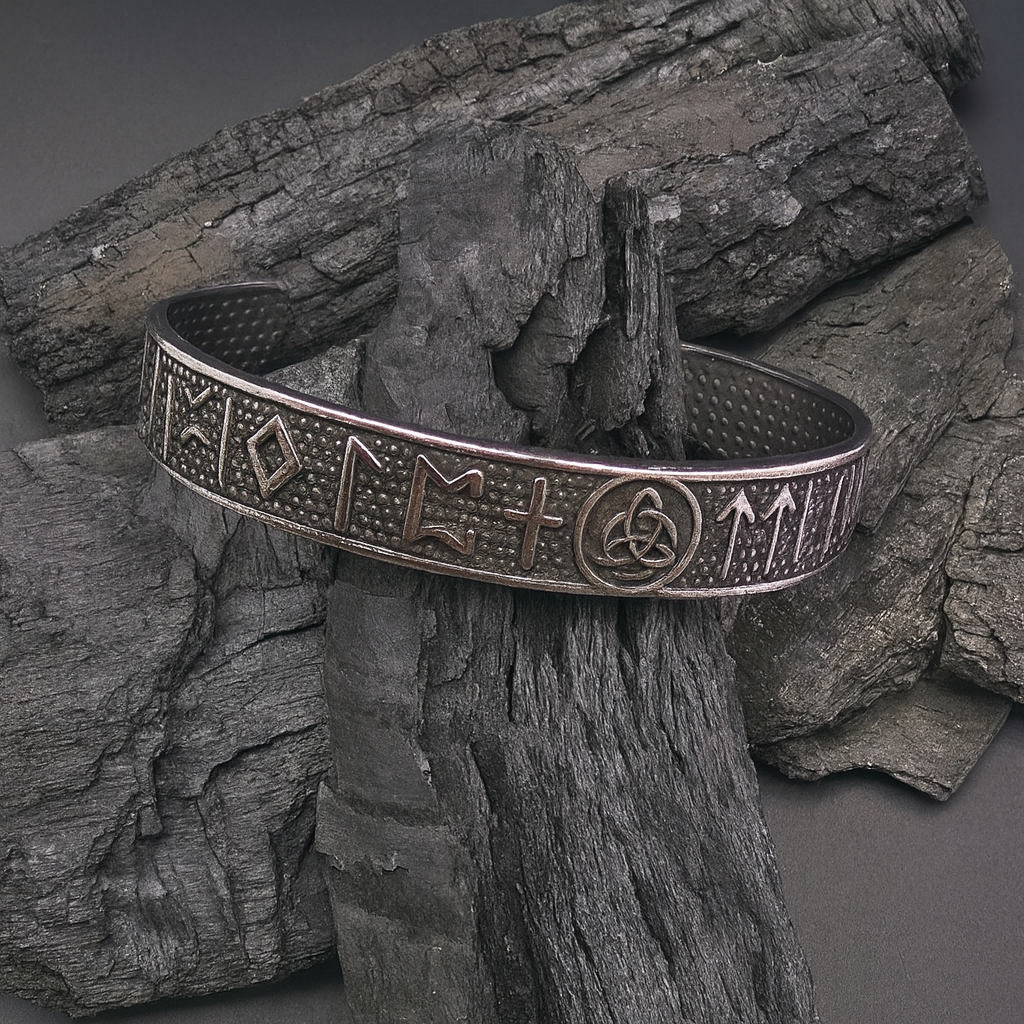 Esta pulsera destaca por su diseño inspirado en la cultura vikinga, con números grabados que le dan un aire histórico y único. Fabricada en acero inoxidable, combina resistencia y estilo para un accesorio que llama la atención en cualquier ocasión.